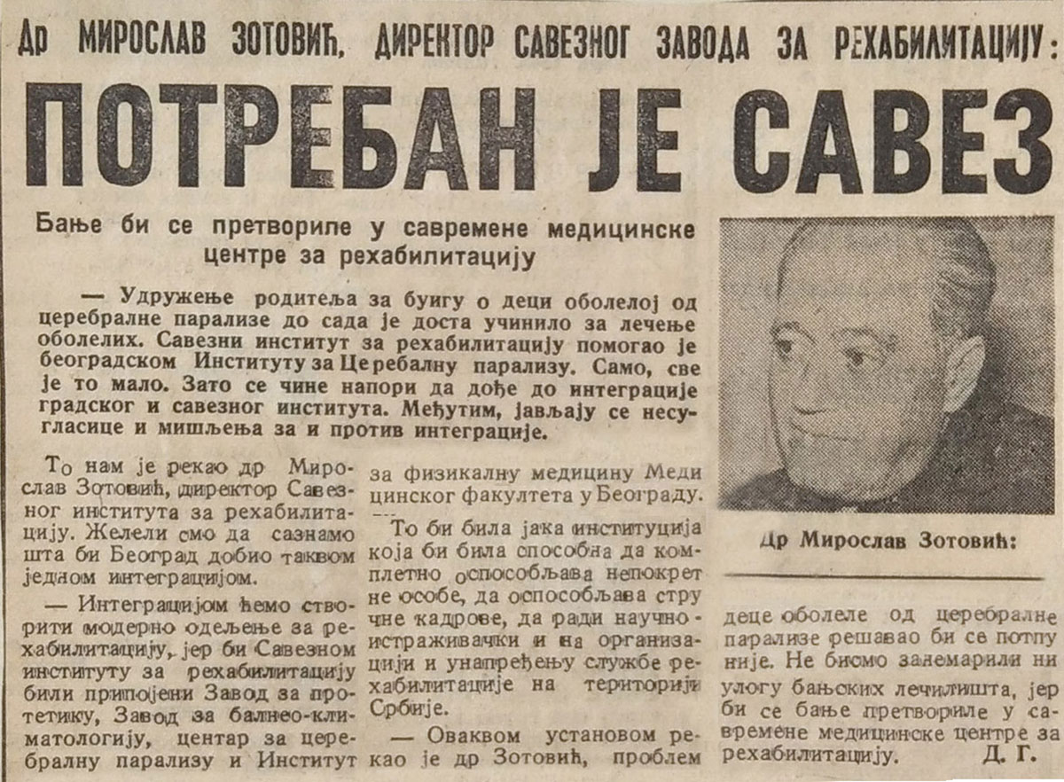 U okviru jedne takve reorganizacije bilo je zamišljeno ukidanje Zavoda za cerebralnu paralizu kao posebne zdravstvene ustanove. Nije bilo lako nositi se sa tadašnjom uobraženom zdravstvenom birokratijom. Aktivisti Saveza nisu posedovali ni autoritet profesije, ni društvenu moć političara. Na njihovoj strani bili su samo argumenti koje je nametao sam život – potreba osoba pogođenih cerebralnom paralizom za specifičnom vrstom zdravstvenih usluga koje se ne mogu pružiti u ustanovama opšteg tipa. Borba je potrajala nekoliko godina, sve dok nadležne strukture nisu digle ruke od upornih cerebralaca.