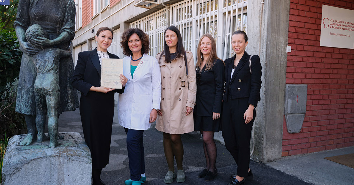 Druga ustanova kojoj je bila neophodna naša pomoć je Specijalna bolnica za cerebralnu paralizu i razvojnu neurologiju jer deca sa cerebralnom paralizom iz cele Srbije dolaze ovde na rehabilitaciju i preglede u pratnji roditelja/staratelja gde provode u kontinuitetu dvadeset jedan (21) dan. Ovoj ustanovi smo donirali osam (8) stolica za kupanje za decu sa cerebralnom paralizom i na taj način dali mali doprinos olakšanom održavanju lične higijene kod najmlađih pacijenata sa cerebralnom paralizom.