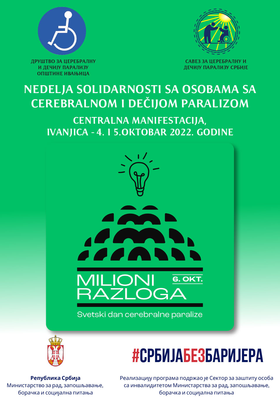 Ove godine Centralna manifestacija u okviru Nedelje solidarnosti sa osobama sa cerebralnom i dečijom paralizom se obeležava 26. put - u Ivanjici 5. oktobra 2022. .