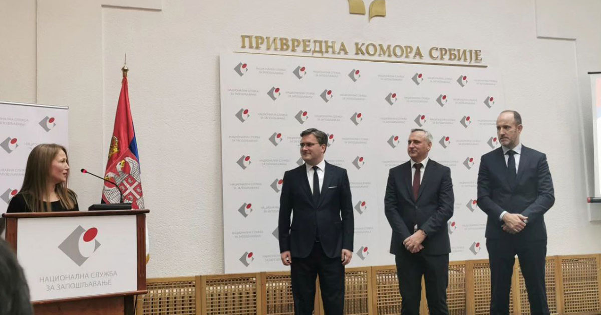 Ministar Nikola Selaković i direktor Nacionalne službe za zapošljavanje Zoran Martinović uručili su Savezu za cerebralnu i dečiju paralizu Srbije posebno priznanje za izuzetan doprinos i zalaganje u procesu zapošljavanja osoba sa invaliditetom.